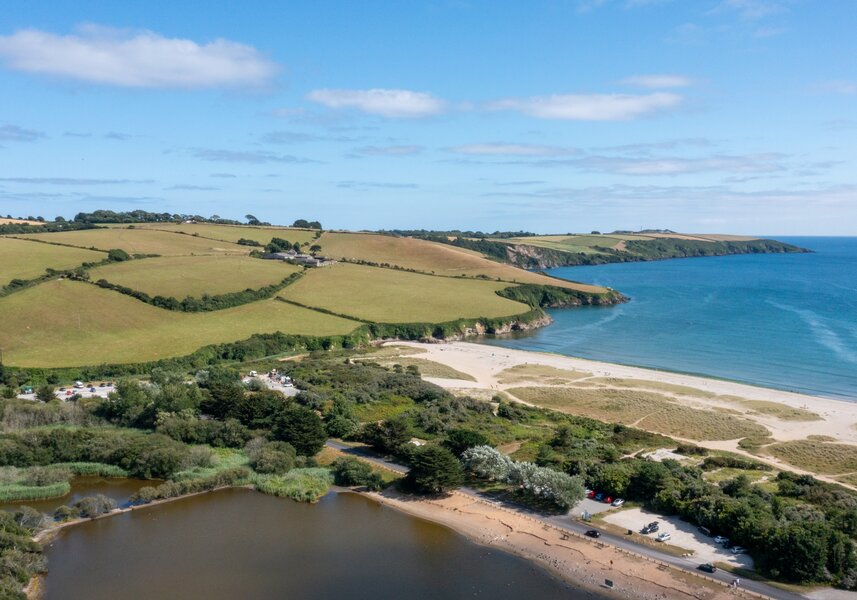 1. Par Sands Beach — Right on your doorstep. A wide, sandy, dog-friendly beach backed by dunes and ideal for walks, paddling, rock pools and kite surfing.